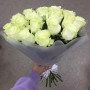 На фото букет из 17 белых роз. В составе: роза 17 шт, крафт-бумага 1 шт, атласная лента 1 шт, . Все цветы свежие и ароматные, букет красиво оформлен и отлично подходит для подарка. Доступна доставка цветов или самовывоз.